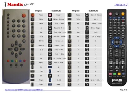 Início > Marcas > Comandos à Distância VOXSON > Controle remoto para VOXSON X65187R-2