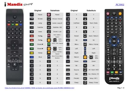 Um documento está incluso para ajudá-lo a usar o novo controle remoto facilmente, mostrando a correspondência dos botões.