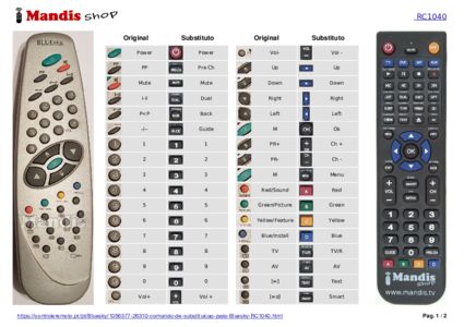 Um documento está incluso para ajudá-lo a usar o novo controle remoto facilmente, mostrando a correspondência dos botões.