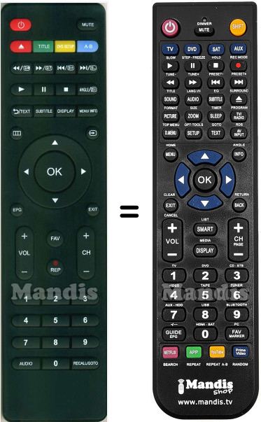 Abaixo, mostraremos a correspondência entre cada botão no controle remoto original e o botão que executa a mesma função no controle remoto de substituição. Em alguns casos, pode ser necessário pressionar a tecla SHIFT antes de pressionar outro botão para realizar determinadas ações. Essas funções adicionais geralmente não são amplamente utilizadas e são incluídas para facilitar o entendimento do controle remoto de substituição, ou porque o controle remoto original tem mais botões do que seu equivalente.