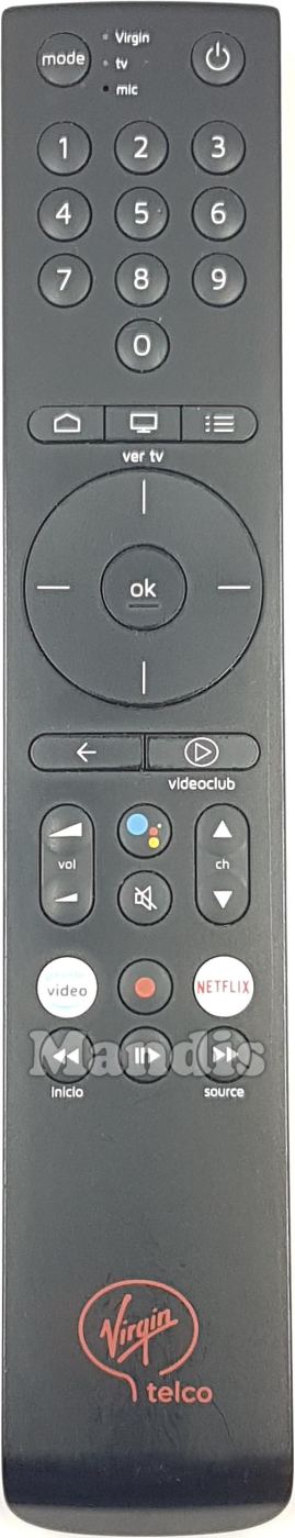 Comando à distância original REMCON2096 da marca Virgin Telco. Trata-se de um modelo original de comando à distância.