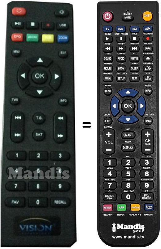 Comando à distância que substitui o original em todas as suas funções.