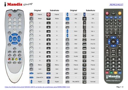 Este controle remoto substitui completamente o seu original em todas as funções. Não é um controle remoto universal, mas sim uma cópia exata do seu original.