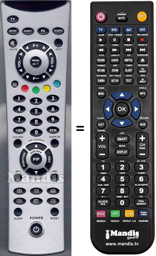 Comando à distância que substitui o original LCD3051TS em todas as suas funções.