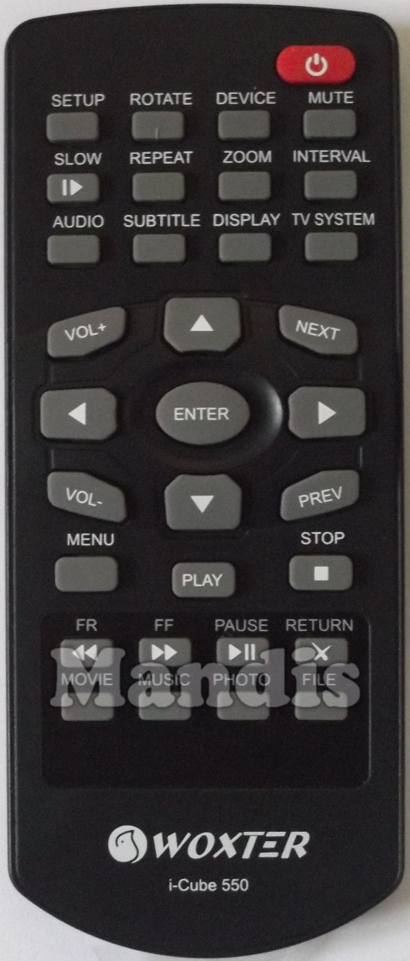 Comando à distância original ICube550 da marca Woxter. Trata-se de um modelo original de comando à distância.