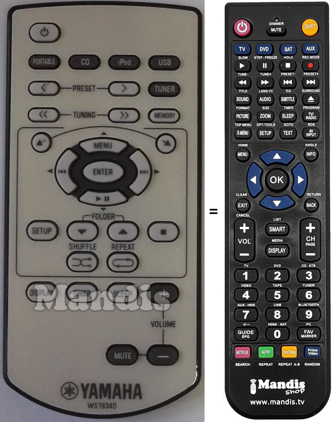 Comando à distância que substitui o original em todas as suas funções.
