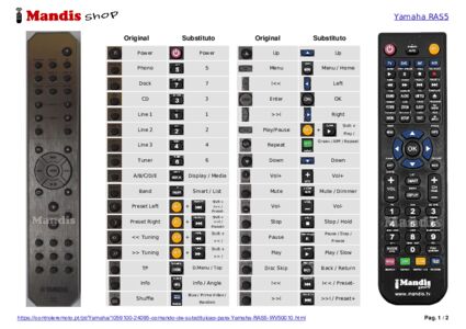 Abaixo, mostraremos a correspondência entre cada botão no controle remoto original e o botão que executa a mesma função no controle remoto de substituição. Em alguns casos, pode ser necessário pressionar a tecla SHIFT antes de pressionar outro botão para realizar determinadas ações. Essas funções adicionais geralmente não são amplamente utilizadas e são incluídas para facilitar o entendimento do controle remoto de substituição, ou porque o controle remoto original tem mais botões do que seu equivalente.