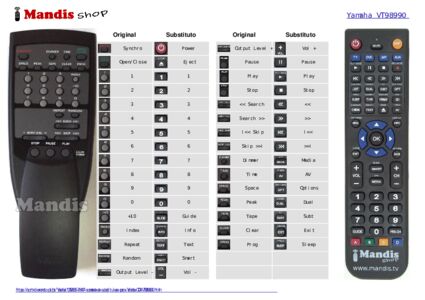 Abaixo, mostraremos a correspondência entre cada botão no controle remoto original e o botão que executa a mesma função no controle remoto de substituição. Em alguns casos, pode ser necessário pressionar a tecla SHIFT antes de pressionar outro botão para realizar determinadas ações. Essas funções adicionais geralmente não são amplamente utilizadas e são incluídas para facilitar o entendimento do controle remoto de substituição, ou porque o controle remoto original tem mais botões do que seu equivalente.