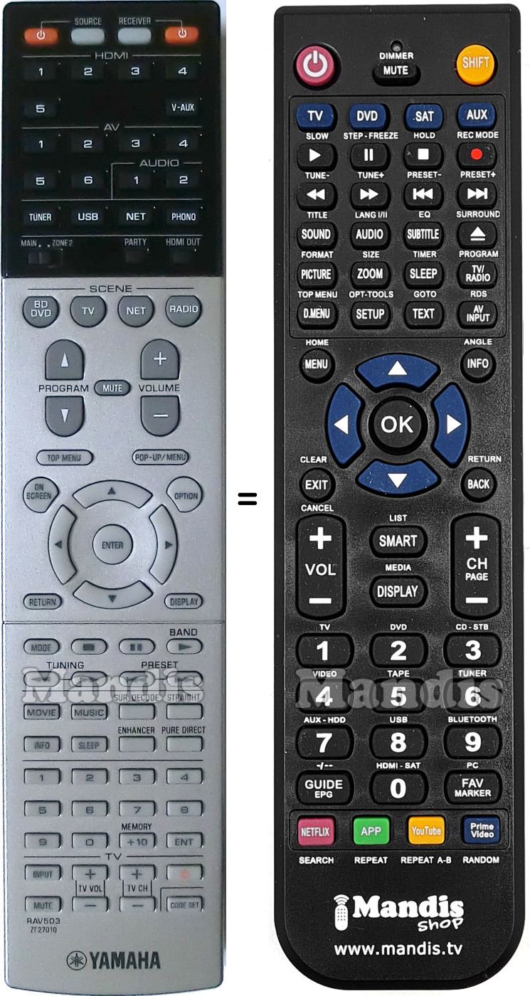 Início > Marcas > Comandos à Distância Yamaha > Controle remoto para Yamaha RAV503