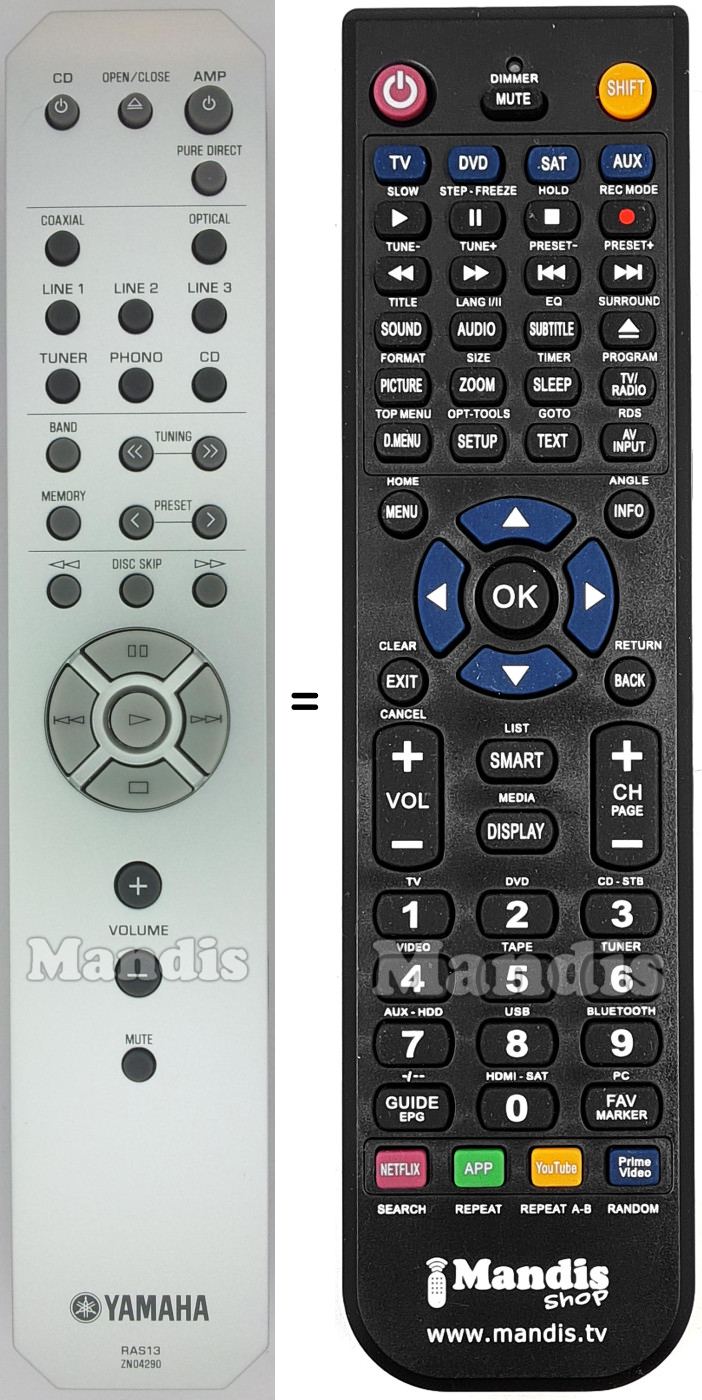 Início > Marcas > Comandos à Distância Yamaha > Controle remoto para Yamaha RAS13