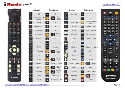 Abaixo, mostraremos a correspondência entre cada botão no controle remoto original e o botão que executa a mesma função no controle remoto de substituição. Em alguns casos, pode ser necessário pressionar a tecla SHIFT antes de pressionar outro botão para realizar determinadas ações. Essas funções adicionais geralmente não são amplamente utilizadas e são incluídas para facilitar o entendimento do controle remoto de substituição, ou porque o controle remoto original tem mais botões do que seu equivalente.
