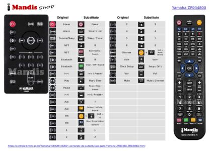 Um documento está incluso para ajudá-lo a usar o novo controle remoto facilmente, mostrando a correspondência dos botões.