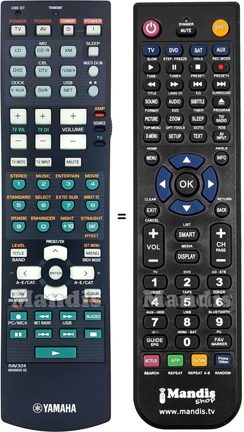 Início > Marcas > Comandos à Distância Yamaha > Controle remoto para Yamaha RAV324