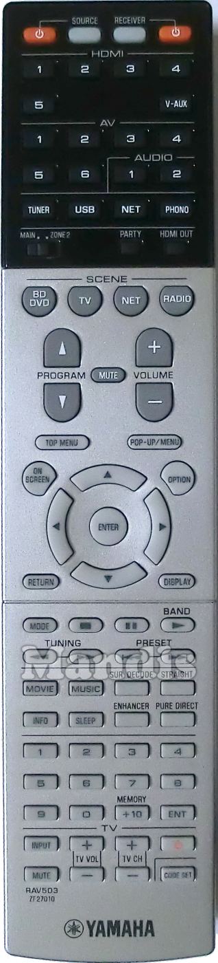 Comando à distância original RAV503 (ZF270100) que serve para av receiver da marca Yamaha. Trata-se de um modelo original de comando à distância.