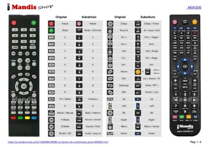 Um documento está incluso para ajudá-lo a usar o novo controle remoto facilmente, mostrando a correspondência dos botões.