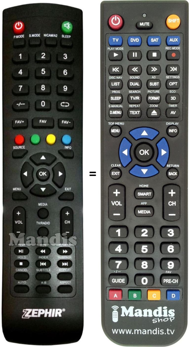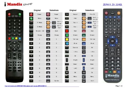 Comando à distância que substitui o original ZV-32HD2 em todas as suas funções.
