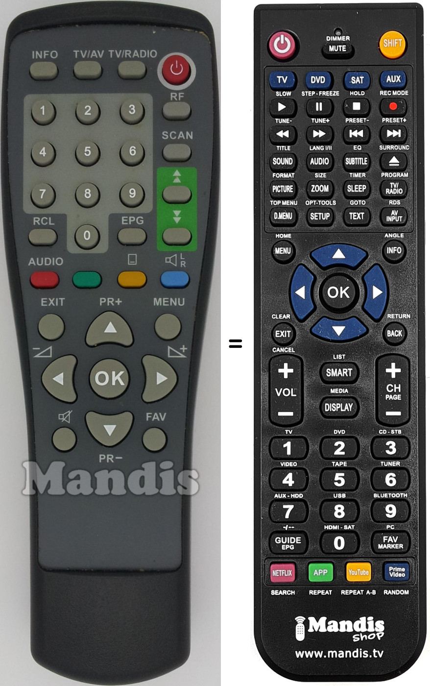 Comando à distância que substitui o original em todas as suas funções.