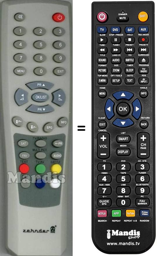 Comando à distância que substitui o original em todas as suas funções.
